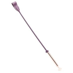 Handcrafted leather riding crop in dark purple for deluxe spanking • Supple leather tip at the end of a flexing spine delivers satisfying stings • Flexible lightweight and easy to wield for intense sensation • Rose-gold metal handle with ornate styling to echo Fifty Shades Freed book cover key • Supplied in a luxurious envelope-style…