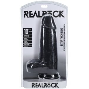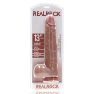 RealRock Extra Long Dildo With Balls Black 13 Inch