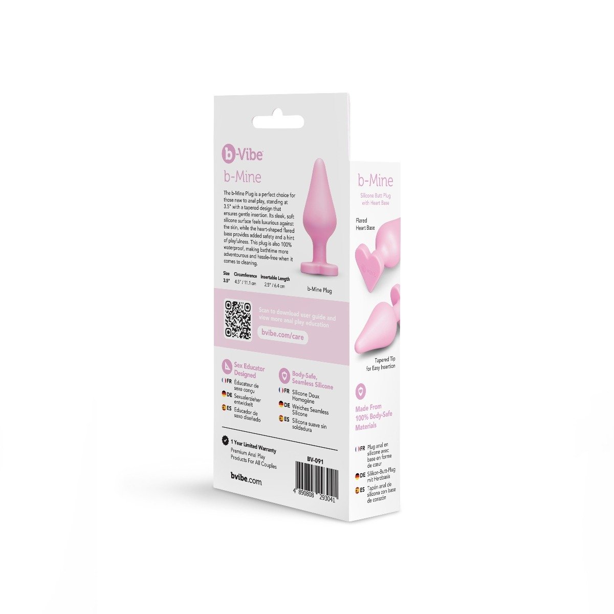 The b-Mine Plug is a perfect choice for those new to anal play standing at 3.5″ with a tapered design that ensures gentle insertion. Its sleek soft silicone surface feels luxurious againstthe skin while the heart-shaped flared base provides added safety and a hint of playfulness. This plug is also 100% waterproof making bathtime more adventurous and hassle-freewhen it comes to cleaning