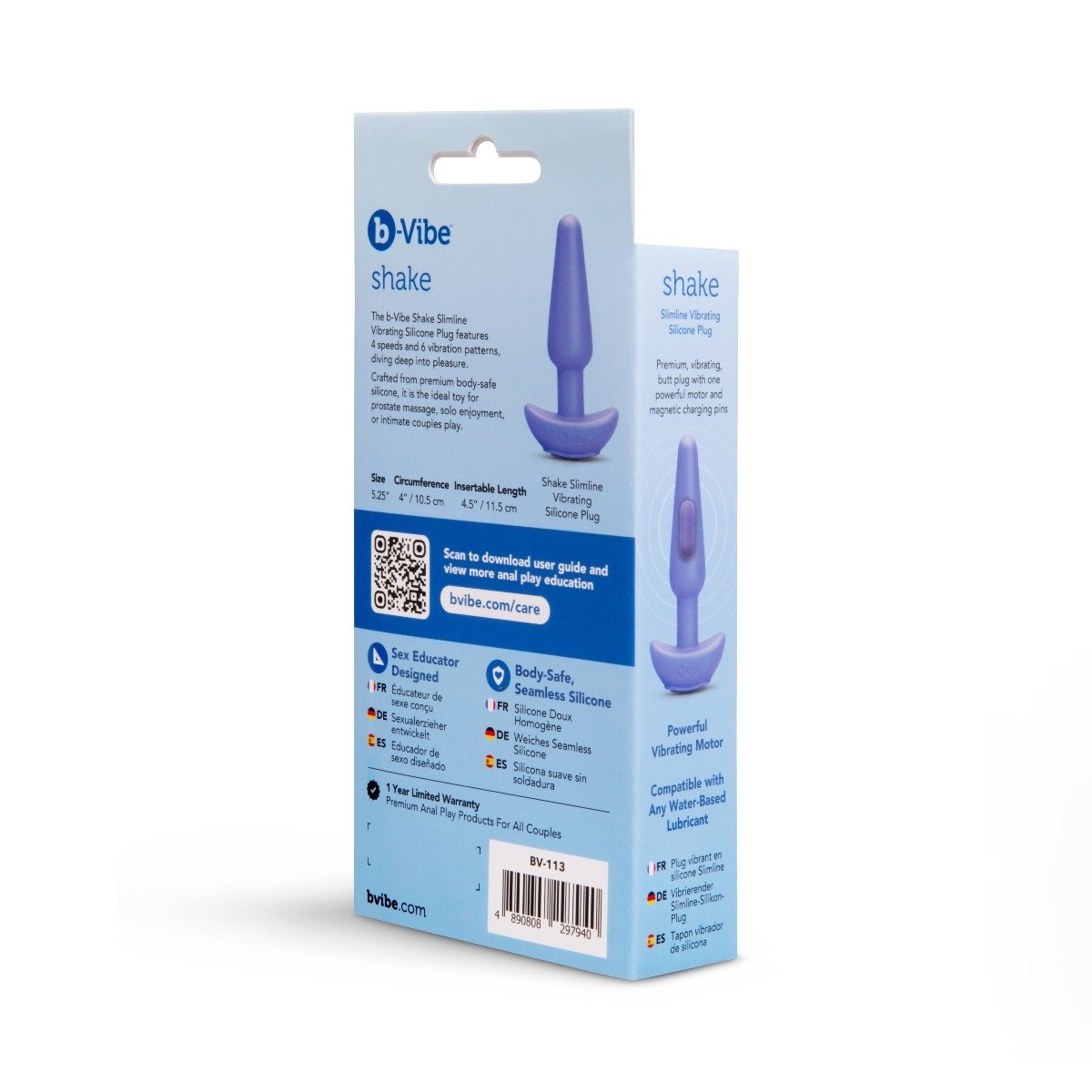 The b-Vibe Shake Slimline Vibrating Silicone Plug features 4 speeds and 6 vibration patterns diving deep into pleasure. Crafted from premium body-safe silicone it is the ideal toy forprostate massage solo enjoyment or intimate couples play.