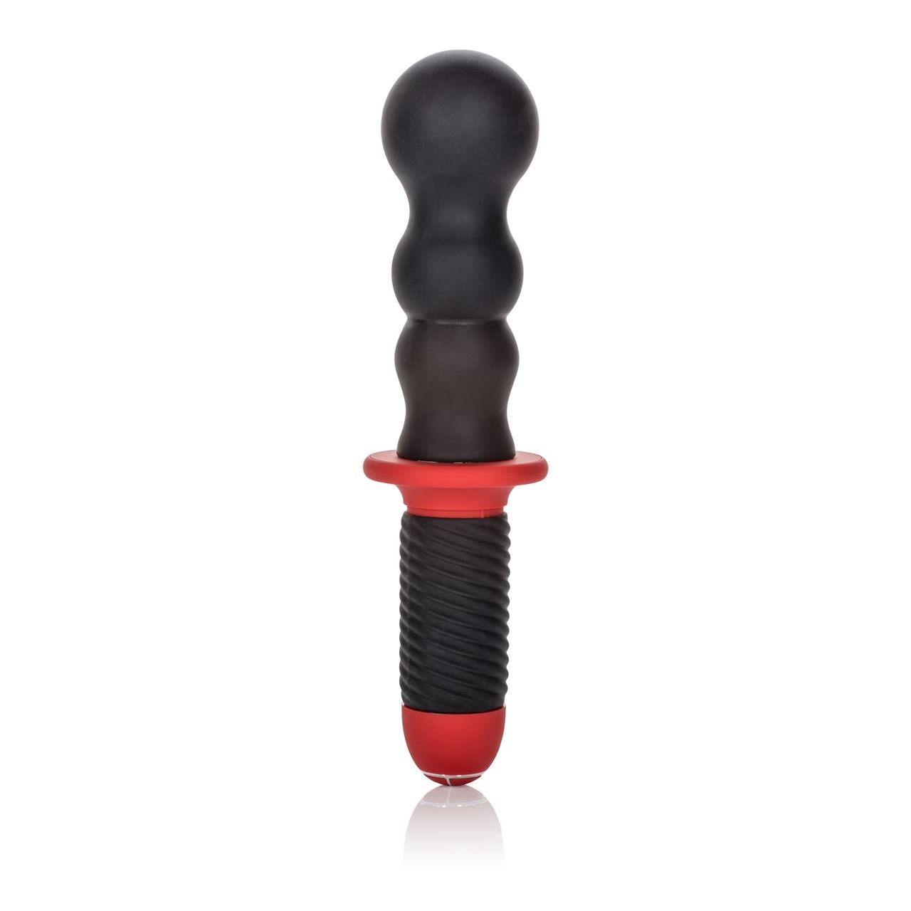 The multi-functional premium Silicone vibrating probe with easy grip handle offers 10 functions of intense vibration pulsation and escalation. It also offers 4 independent speeds for each function and an easy touch controller with LED. Simply hold the probe for 3 seconds to turn off. Silicone (probe handle) ABS with PU Cote (cap buttons rim) ABS with Silver Plating (décor) 4 AAA Batteries Required (Not Included). The COLT line of toys are made of phthalate free Silicone & ABS Plastics that are waterproof and safe to use with your favorite Water Based Lubricant. Size: 6” x 2.25”/15.25 cm x 5.75 cm. Relax and enjoy!