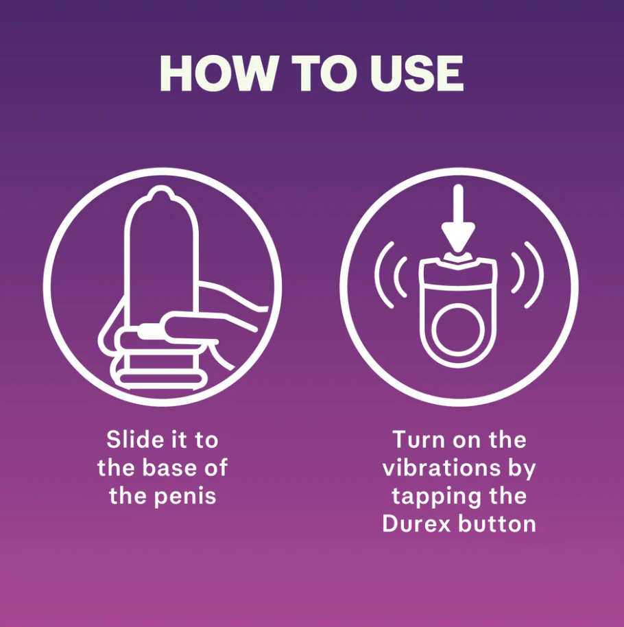 Durex Intense Vibrations is a vibrating ring that delivers more intense orgasms for both. Vibrations offer targeted clitoral stimulation for her and the constriction of the ring heightens his arousal by being stronger. The ring is stretchy for maximum comfort and easy to use. Intense Vibrations can be used with or without a condom.