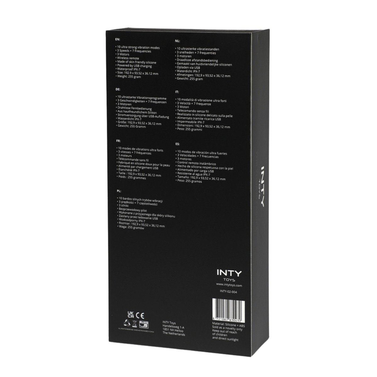 • 10 ultra strong vibration modes• 3 Speeds + 7 Frequencies• 3 Motors• Wireless remote• Made of skin friendly silicone• Powered by USB charging• Waterproof IPX-7• Size: 192.9 x 93.52 x 36.12 mm• Weight: 255 gram