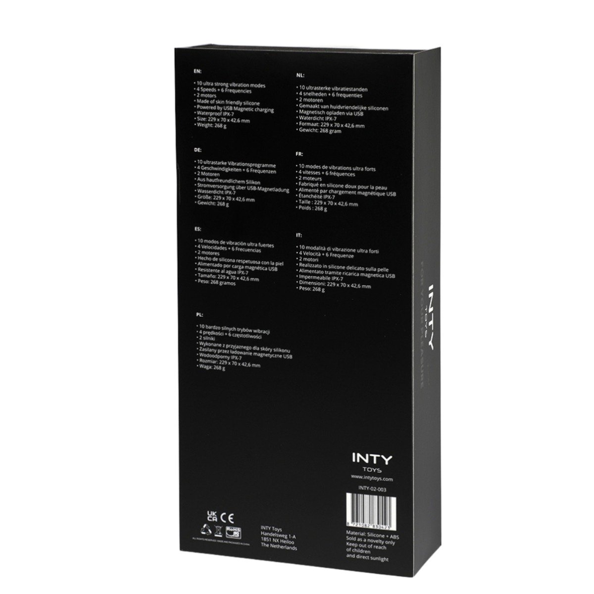 • 10 ultra strong vibration modes• 4 Speeds + 6 Frequencies• 2 motors• Made of skin friendly silicone• Powered by USB Magnetic charging• Waterproof IPX-7• Size: 229 x 70 x 42.6 mm• Weight: 268 g