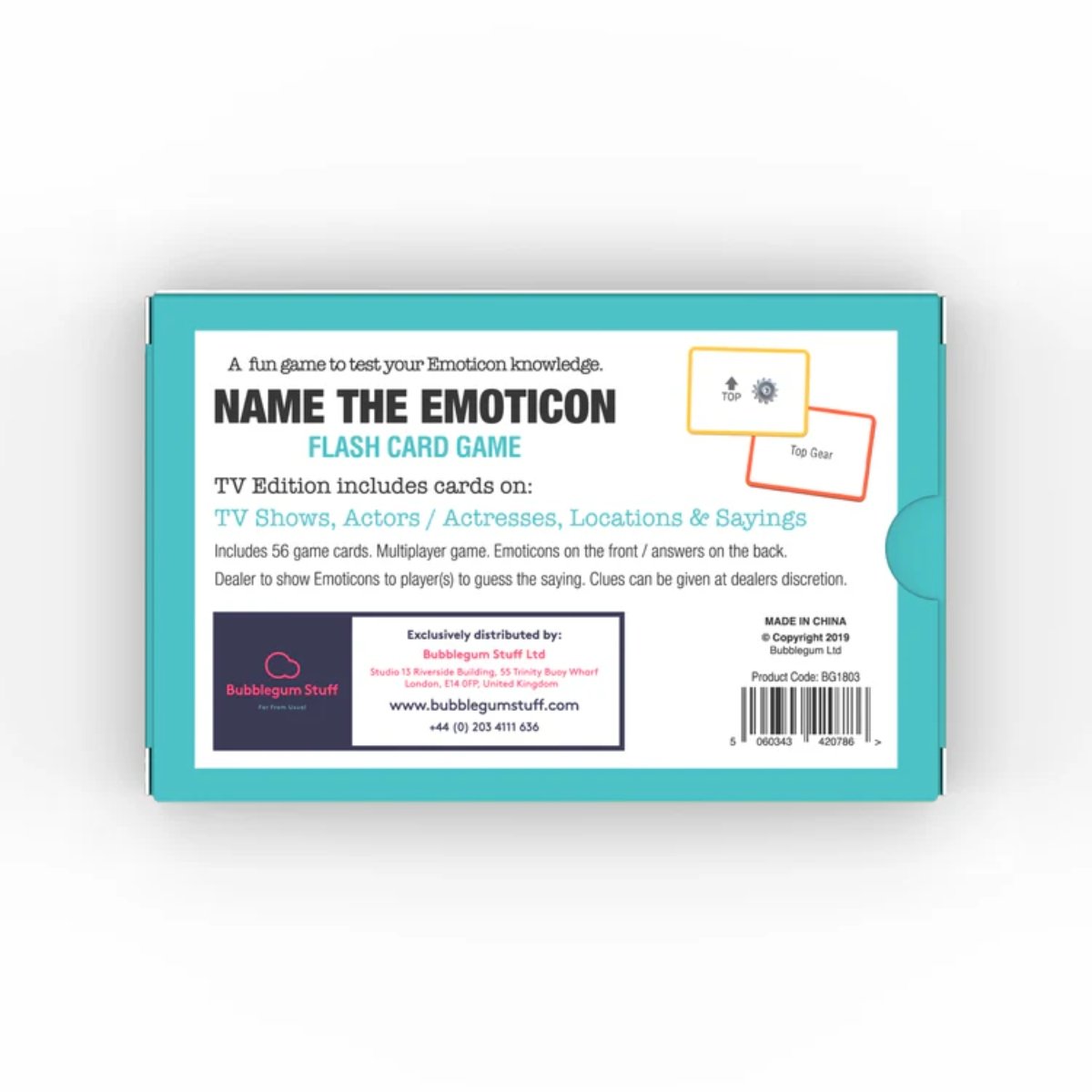 Kids today… if they’re not watching TV they’re on their phones communicating via emojis. Does this sound like your kids? Does this sound like YOU?? If so then Name the Emoticon – TV Edition is probably the TV trivia card game for you.Emojis in varying combinations represent names words and phrases from the world of TV. It’s your job to take turns and decipher them. Who knows your favourite show might even come up.At the end of this prime-time TV quiz players count their cards. The one with the highest total is the winner. Don’t forget to congratulate that smug telly addict.This game comes with a warning though. Due to the unique way we all interpret emojis it’s not as straightforward as it sounds. Expect to witness some pretty outrageous guesses that make about as much sense as the ending of Lost. There are almost always some pretty bonkers brain farts that come from your best friend sister or your grandma!Name the Emoticon – TV Edition is a simple and fun card game for people who love TV almost as much as they love emojis.