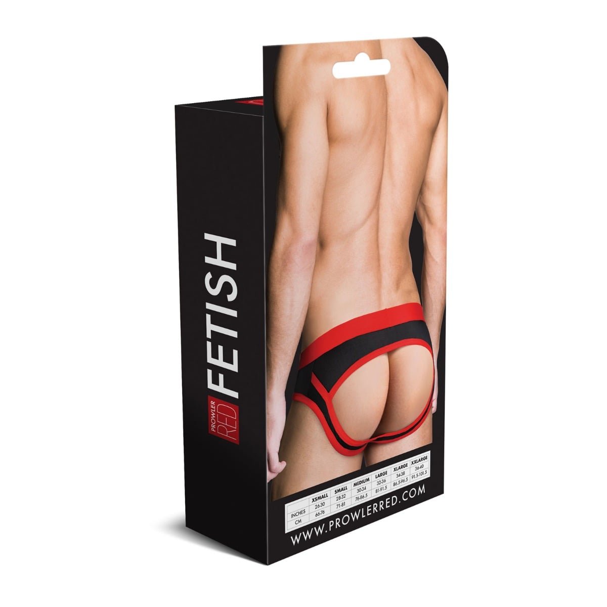 Prowler RED Ass-less Brief RedThese sexy red backless fetish briefs from Prowler RED are your new go-to underwear choice for getting down to business in the bedroom or out at sex parties. Made from 82% polyester and 18% spandex these briefs feature red piping across the black pouch with the Prowler Paw logo in the middle of the waistband. These briefs feature an open back so your butt is always on show and ready for anything.