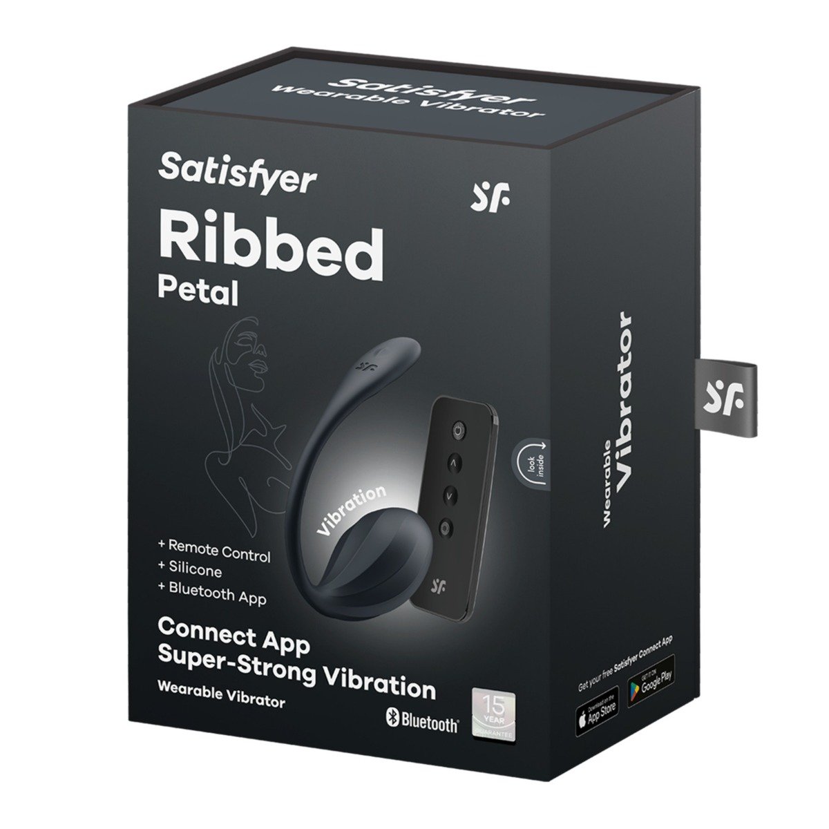 You want to head out into the world and experience something? The Satisfyer Ribbed Petal is coming with you! The portable vibrator made of hygienic silicone is easy to insert thanks to its ergonomic shape and is comfortable to wear. The internal wire allows you to flexibly bend the Ribbed Petal. The shaft which has exciting grooves pampers and massages your G-spot with 12 strong vibration programs. You are free to choose whether you want to control your portable vibrator with the supplied remote control or whether you prefer to use the Satisfyer Connect app.Perhaps you just leave the remote control with your sweetheart? We’ll leave this enviable choice to you. The portable Satisfyer Ribbed Petal will accompany you on all your adventures – even where things might get wet. Thanks to its waterproof finish (IPX7) it’s happy to get wet. 15-year guaranteeWearable due to ergonomic designSuper-strong deep vibrationWith wireless remote controlBody-friendly siliconeWaterproof (IPX7)Can also be used without the appPreset programmes can be editedApp offers an unending range of programmesWhisper modeMagnetic USB charging cable includedRechargeable Li-ion batteryEasy to clean