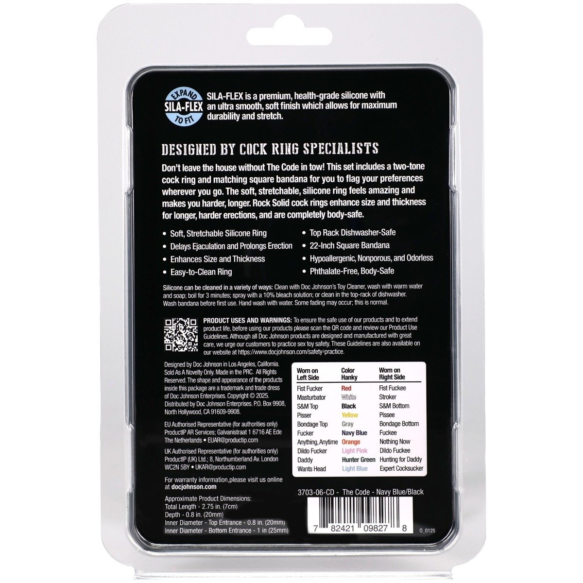 Don’t leave the house without The Code in tow! This set includes a two-tone cock ring and matching square bandana for you to flag your preferences wherever you go. The soft stretchable silicone ring feels amazing and makes you harder longer. Rock Solid cock rings enhance size and thickness for longer harder erections and are completely body-safe.