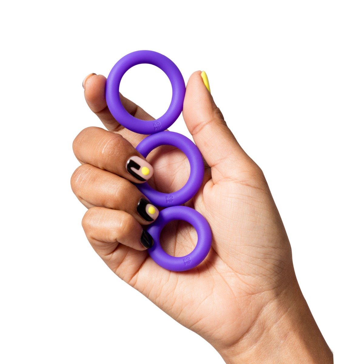 ROMP Remix Trio packs a selection of three durable super stretchy non-vibrating penis rings to support staying power and harder erections. Made to fit all sizes and shapes wear one two or all three in different shaft and testicle combinations for solo and partner approved pleasure.