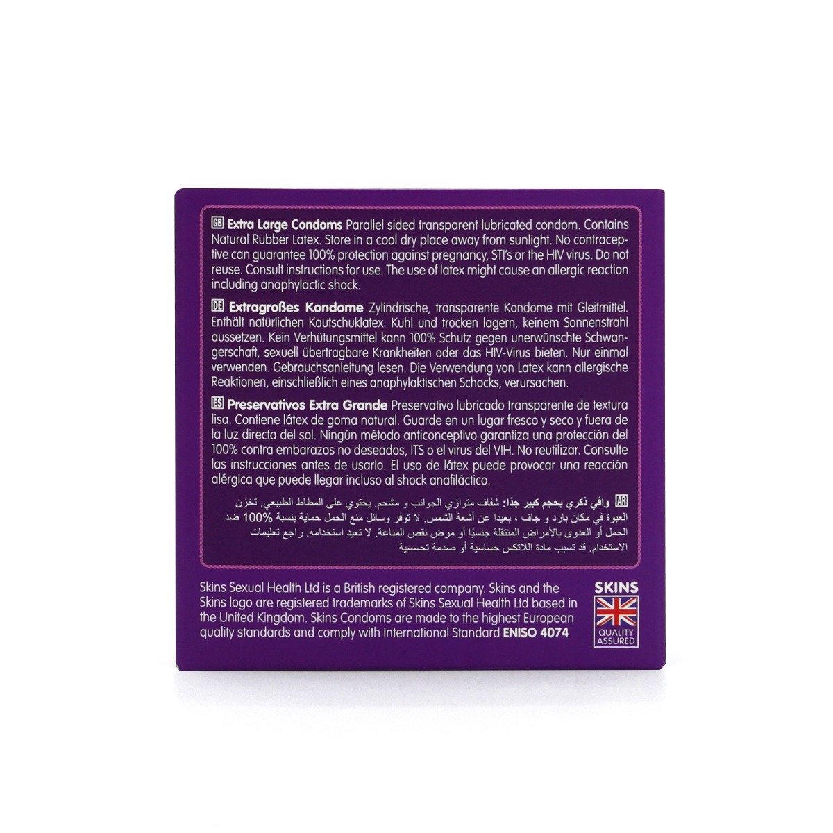 Skins Extra Large condoms are made using premium quality natural latex for a clear natural feeling strong condom. So thin they feel like a second skin! Never go in without a Skin!