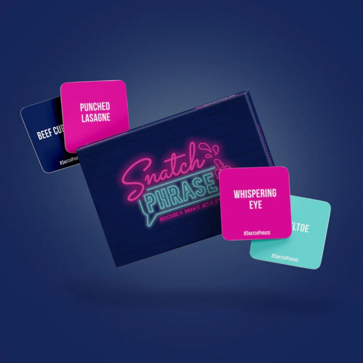 Turn up the heat at your next games night with Snatch Phrase an X-rated sexual slang party game sure to cause a scene!Split into teams and dive into a world of wild shocking and utterly hilarious fun as you sketch act mime and puppeteer some of the rudest phrases imaginable.Choose your scandalous phrase by drawing a card ranging in from mildly cheeky to outrageously daring in three categories: soft semi and hard!Race against the clock to shout out the disgraceful phrases before the timer runs out – quick thinking and quicker gestures are key.Stuck? Use your single “F*ck It” card to skip a phrase once per game. But use it wisely!Whether you are breaking the ice or heating things up this NSFW game is sure to cause a stir on Bachelor and Bachelorette parties or any adult games night.