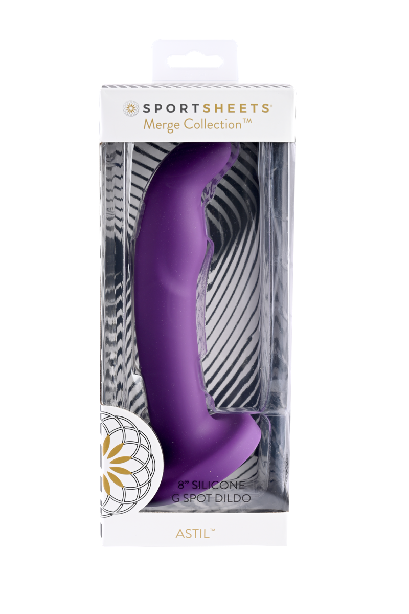 The Astil 8-inch solid silicone dildo from the Sportsheets Merge Collection is the creation of pleasure and versatility combined. With its flared base Astil can be used with O-Ring and underwear-style harnesses externally or internally for partner and solo play. The ample curvature nonrealistic pleasure-bump shaft and tapered tip encourage G-Spot and P-Spot stimulation and the soft silicone creates an ultra-smooth sensation making it feel like a dream. Merge with pleasure.
