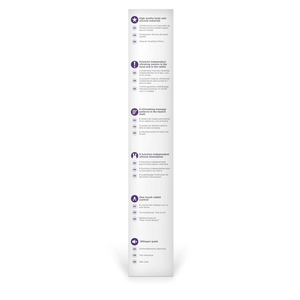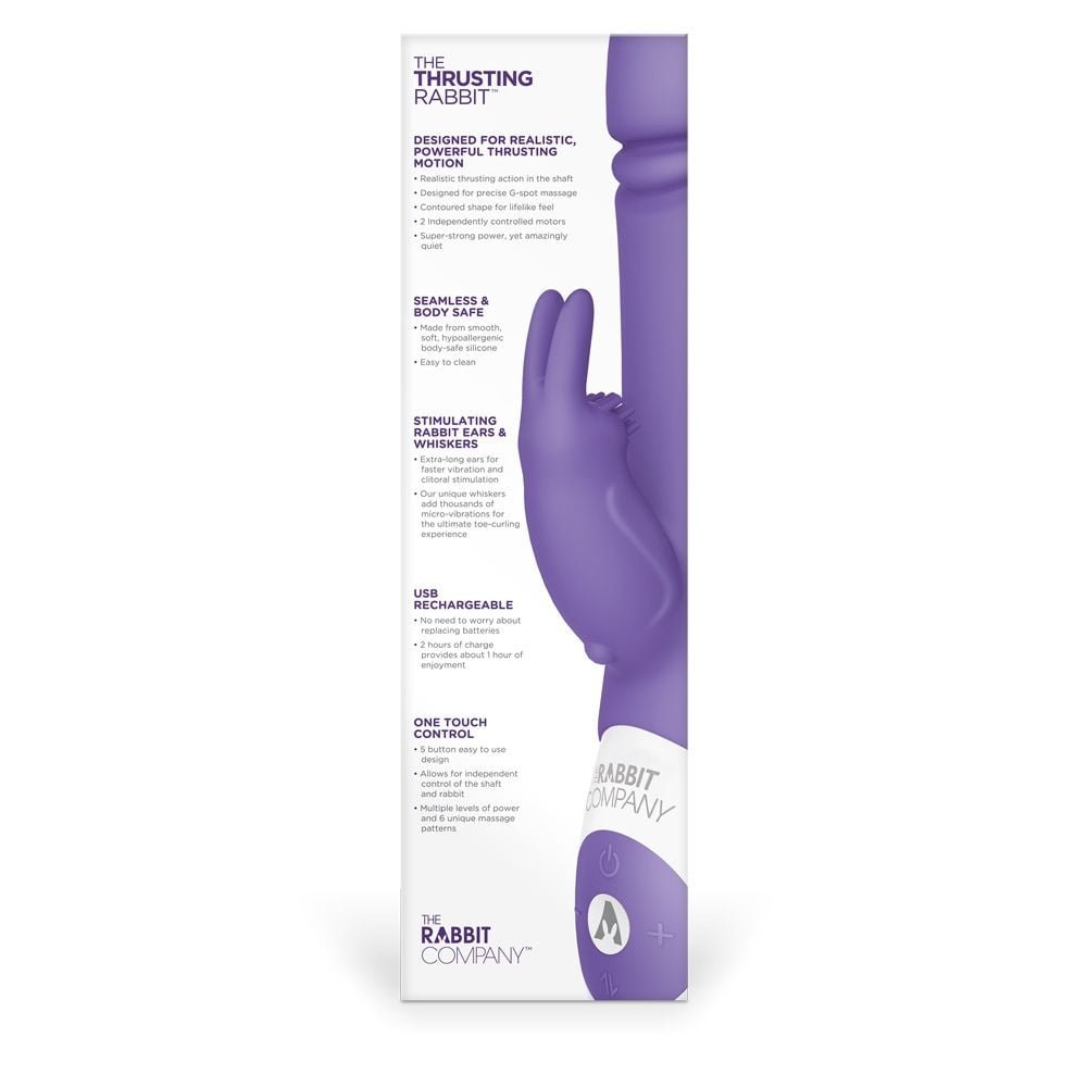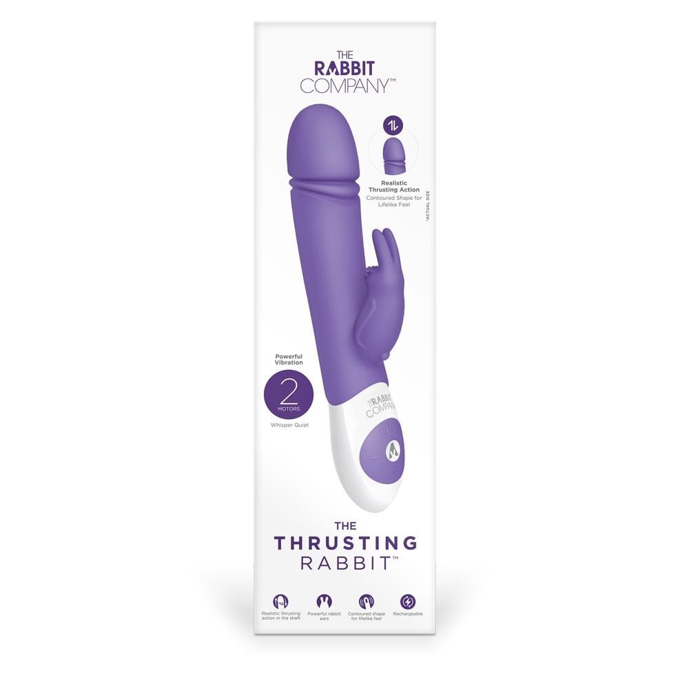 The Purple Thrusting Rabbit adds a splash of colour to your toy collection and combines realistic thrusting with clitoral stimulation for exciting all-round pleasure. This rabbit vibe is made from high quality silicone and features two independent motors – one in the shaft and one in the clitoral stimulator. The thrusting rabbit has an ergonomic shape that complements your body – ensuring that it’s always on target for intense pleasure. This vibrator has 6 stimulating massage patterns in the head and the shaft as well as a 6 function independent clitoral stimulator for added intensity. The Thrusting Rabbit is designed for discretion thanks to the whisper quiet style. It’s USB rechargeable and has one-touch control for easy handling in the heat of the moment. Add a high quality water based lubricant for extra sensation and comfort.