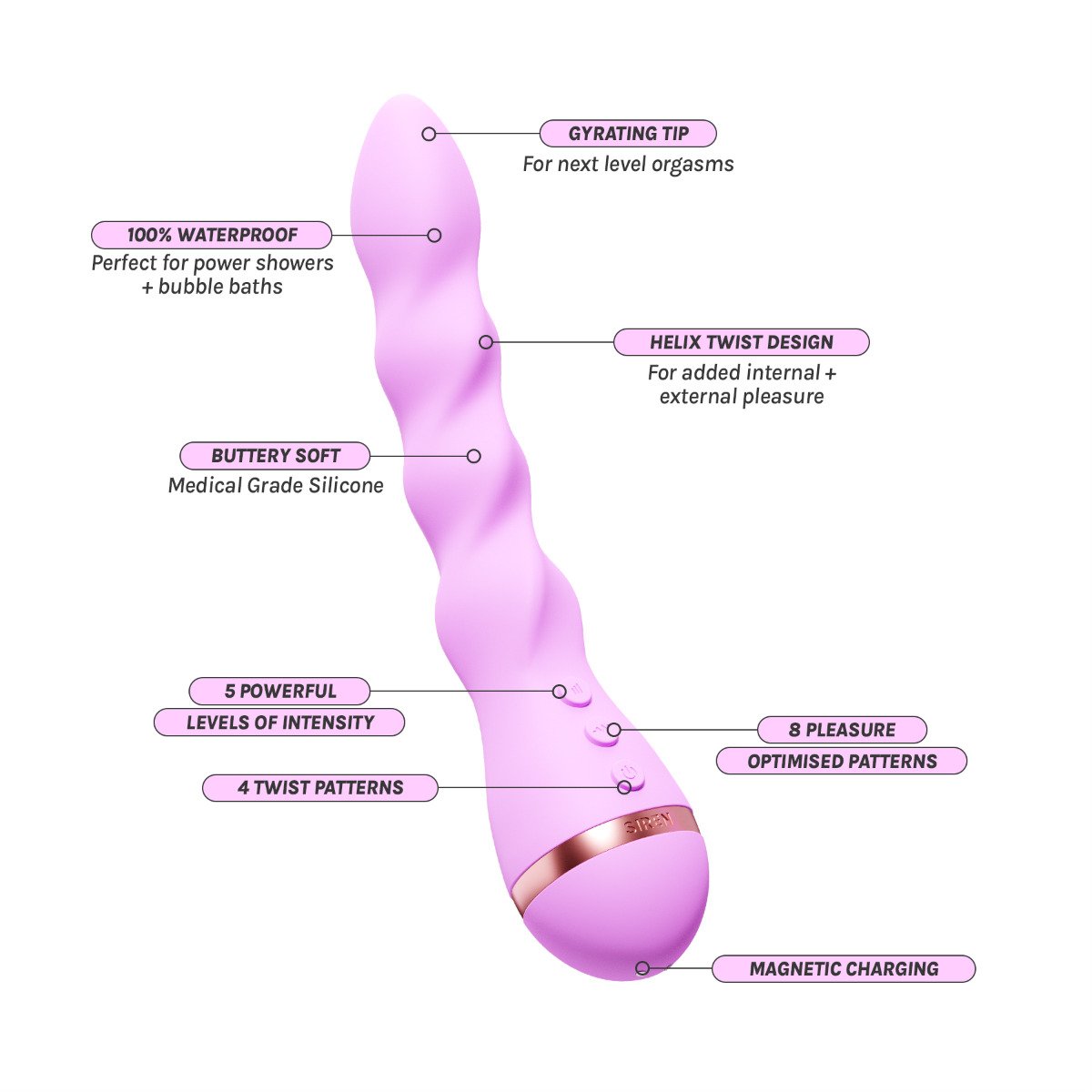 Siren is a multi-use twist vibrator that invites you to explore the best of both pleasure-filled worlds. Siren features a helix twist design and a gyrating tip for next level orgasms so whether you’re in the mood for internal or external play – Siren is about to become your brand new bestie! Unleash the siren within and let the mythical journey begin.